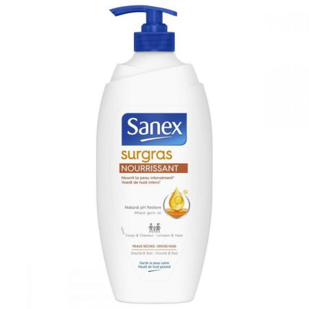 SURGRAS NOURRISSANT (750ml)La crème de douche et bain Sanex SURGRAS Nourrissant est formulée spécialement pour les peaux sèches. Enrichie au complexe active surgras et à l'huile de germe de blé, elle aide à restaurer le niveau d'hydratation naturel de la peau.