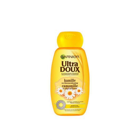 Shampoing Ultra Doux Camomille 300 ml En Rupture 2,69 € Shampoing ultra doux illuminant à la camomille et miel de fleurs pour les cheveux blonds.